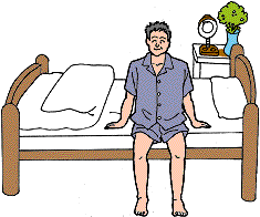 家庭で療養する場合は、畳の上にふとんを敷くより、ベッドに寝たほうが、起き上がるのが簡単で、介助にも便利です。ベッド選びに際しては、次の3つの条件にあてはまるものにします。[1]端に腰かけたとき、足が床につく。[2]ベッドの下は空間で、何もない。[3]マットレスがかためで、体が沈まない。 寝たきりでじっとしているのではなく、ベッドのふちに腰かけることも、リハビリテーションになリます。3つの条件を満たしたベッドを用意して、積極的に機能回復訓練を行いましょう。 |