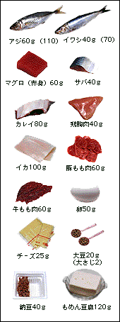 魚介類 80 肉類 60 鶏卵 50 豆腐 100 |