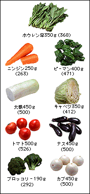 〈表6〉目で見る1単位重量 野菜類、海藻類、キノコ、コンニャク |