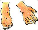 痛みの発作をくり返すうちに、痛風結節といって、手や足の関節が上図のように腫れてくる