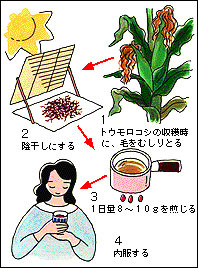 左図に示したほか、南蛮毛15gに、実を採ったあとのトウモロコシの芯(しん)2本を砕いたものを加え、540mlの水で煎(せん)じて服用しても効果があります。
