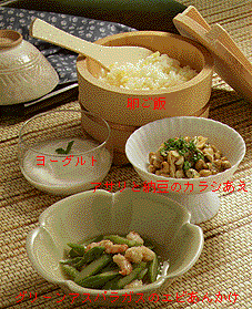 卵ご飯 ご飯 卵 サラダ油 塩 アサリと納豆のカラシあえ アサリ 納豆 長ネギ・アサツキ 練りガラシ だし汁 しょうゆ グリーンアスパラガスのエビあんかけ グリーンアスパラガス エビ サラダ油 だし汁 しょうゆ みりん 片栗粉 ヨーグルト プレーンヨーグルト |