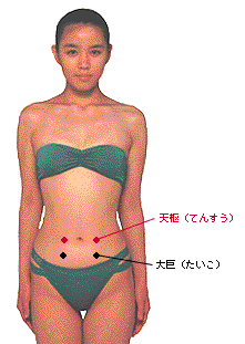 急性腸炎/慢性腸炎の特効ツボ 最も効果のあるツボ 天枢(てんすう)―― おなかをこわしたときの名穴 ツボの見つけ方 へそから左右それぞれ、手の指幅3本分のところにある。 治療のコツ 治療法は灸治療(きゅうちりょう)がよい。ツボに米粒大、またはその半分のもぐさを直接すえて火をつける透熱灸が効果的。 |