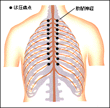 肋間神経の分布と圧痛点(背側から見たところ)