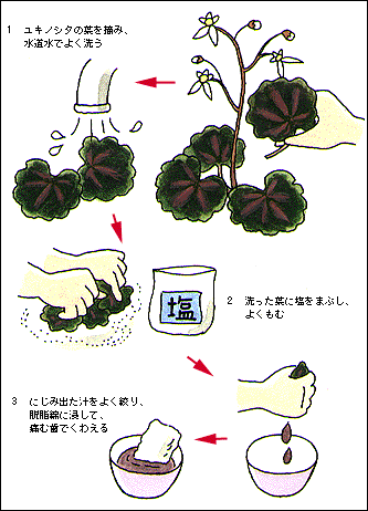 ユキノシタの絞り汁の用い方 |