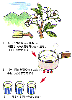 新鮮な生葉を250〜500gほど採取し、水洗いしたあと、もめん袋に詰めます。これを浴槽に浮かべて入浴します。