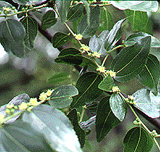 [生薬名] 大棗(たいそう) [特徴] 初夏に淡紫色の小花が咲き、秋に卵形の小ぶりな果実が熟す。生の果実は少々酸味があり、そのままでもおいしいが、甘く煮て食べたりもする。 [薬用部と薬効] 果実――滋養強壮、利尿、鎮痛 [採取と用い方] よく熟した果実を日干しにして蒸し、再び日干しにする。漢方薬に処方される。滋養強壮には大棗酒もよい。