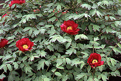 [生薬名] 牡丹皮(ぼたんぴ) [特徴] 中国原産。本来、薬用植物であったが、5月上旬に咲く花が美しいため、観賞用として多く栽培されている。白、ピンクなど品種は多数あるが、薬用には赤を使う。 [薬用部と薬効] 根皮――浄血、鎮痛 [採取と用い方] 苗から4〜7年目の秋に根を掘り、水洗いして日干しにし、皮を裂く。主に漢方薬に処方される。