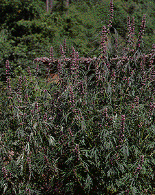 [生薬名] 益母草(やくもそう:花期の地上部)、じゅう蔚(じゅうい)、じゅう蔚子(じゅういし:種) [特徴] 荒れ地などに自生する。8月ごろ1mほどの高さになり、葉のつけ根に花を数個ずつつける。葉は初め丸く、生長すると菊に似る。 [薬用部と薬効] 開花期の地上部――産後の止血、月経不順、めまい、腹痛 種子――利尿 [採取と用い方] 8月、開花期の地上部を全部刈り、日干しにしたものを煎(せん)じて服用する。