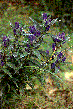 [生薬名] 竜胆(りゅうたん) [特徴] 青紫色の花が美しく、秋の野に咲く花として親しまれ、切り花としても人気がある。根は苦く、竜の胆(きも)といわれるほど。 [薬用部と薬効] 根――健胃 [採取と用い方] 秋に根を掘り、水洗いし、日干しにして粉末にしたものを食後すぐ服用したり、漢方薬に処方する。