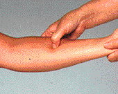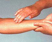 [3]つまむ さわってみて、だいたい見当のついたところの皮膚を、つまみ上げてみます。それから親指と人さし指で2〜3回もんでください。探していたツボなら、そのときに刃物で切られたような、刺すような痛みを感じて体がぴくつき、反応するはずです。 もし、そのような痛みを感じなかったら、少しずつ位置を変えて探します。ツボを探すときは、左右とも同様にして調べてください。 |
