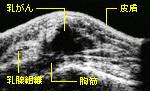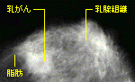 ふつうよりも波長の長いX線を使用したX線の乳房の撮影を、マンモグラフィーという。乳がんの初期など、従来のX線には写らない小さながん組織の影も、小さい石灰化の像の存在で発見できる。左上は、乳がんの超音波画像。
