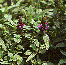 [生薬名] 夏枯草(かごそう) [特徴] 日当たりのよい道端や野原によくある多年草。茎は四角形で15〜30cm、葉はだ円形。初夏に紫色のくちびる形の花が穂状につく。 [薬用部と薬効] 花穂(かすい)――消炎、利尿 [採取と用い方] 8月初旬、褐色になりかけた花穂を採り、日干しにする。口内炎には、煎じ汁(せんじじる)でうがいをし、利尿には、煎じ汁を服用する。