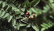 [生薬名] 蜀椒(しょくしょう) [特徴] 葉にはギザギザがあり、つけ根に一対のトゲがある。5月ごろ黄色い花が咲き、果実は秋に熟す。 [薬用部と薬効] 果皮――健胃整腸、利尿、虫下し [採取と用い方] 秋、成熟した果実から果皮をとり、乾燥する。薬味として用いるほか、漢方薬に処方される。やや毒性があるので食べすぎないこと。