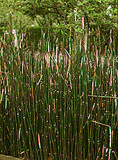 [生薬名] 木賊(もくぞく) [特徴] 山地の湿地に自生するが、栽培もされる。茎は太くてかたく、縦にすじが通っている。節の部分に退化した葉がついている。 [薬用部と薬効] 茎――腸出血・痔出血の止血、むくみ [採取と用い方] 4月ごろ、あるいは8〜10月に地上部を刈り、水洗いして日干しにする。煎(せん)じて服用する。漢方薬に処方される。