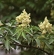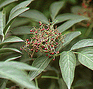 [生薬名] 接骨木(せっこつぼく) [特徴] 高さ5mほどの落葉樹で、山野に自生するほか、庭でも見かける。開花は春で、6〜7月ごろ果実がつく。接骨木の名は、骨折、打ち身などの特効薬として利用されていたため。 [薬用部と薬効] 葉、枝――消炎、鎮痛、利尿 [採取と用い方] 葉、枝とも7〜8月ごろ採取。枝を陰干しにし、煎(せん)じて服用すると利尿に。葉は生か煎じ汁を温湿布に使う。または薬湯にする。