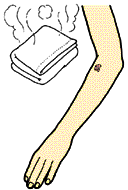 ●灸のあとはタオルでふきとり、軽く指圧する |
