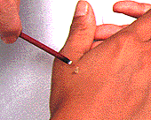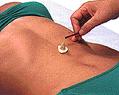 ●同じツボに3〜7回、続けてすえる 灸をすえる回数は、体質、体力、症状で異なりますが、大人で3〜7壮(同じ場所に1回すえることを1壮という)、子供なら1〜3壮が適当でしょう。 1回目のもぐさが燃えつきたら、ピンセットや小筆で払い、すぐに2回目のもぐさを置いて、続けて灸をすえます。 灸を始めて2〜3日後に、発熱したり、体がだるかったりする状態が続いたときは、回数を減らし、もぐさも小さくします。3週間くらい続けて灸をしたら、1週間ほど休みます。根気よく続けることが大切です。 |