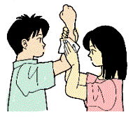 出血多量のときは、まず止血することが先決です。人間の血液は体重1kg当たり80mlで、全血液量の3分の1以上を一時に失うと生命が危険です。 大半の出血は、傷口を強く押さえれば止まります。まっ赤な血液がほとばしり出て、圧迫しても止まらないときは、心臓に近い止血点を押さえながら、一刻も早く外科へ。 |