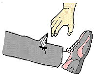大きな異物が刺さったときは、抜かずに病院へ。抜くとかえって大出血してしまう |
