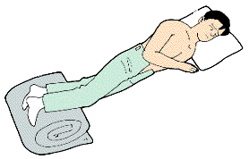 足を高くし、窒息しないように体を横向きにする