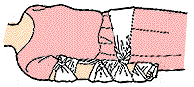 骨折するとひどい痛みがあり、患部が変形したり、腫(は)れたりします。変形していても勝手に直したりせず、楽な姿勢で安静にします。骨折部分を動かさないように固定し、医師の手当を受けます。 |