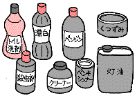誤って毒物を飲んでしまったら、意識があるかどうか、何をどれだけ飲んだか、吐いたほうがよいかをチェック。強い酸(トイレ用洗剤)、強いアルカリ(漂白剤)、灯油などや、口の中がただれているときは、吐かずにすぐ病院へ。 吐いたほうがよいものは、薬類、化粧品、台所用洗剤、タバコ、ナフタリン、農薬類など。吐いたあと、早めに医師の手当を受けます。 |