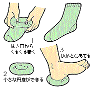 ●圧力のかかる部分を保護する ひじやかかとなどの床ずれは、円座をあてて床ずれ部分が寝具にあたらないようにする |